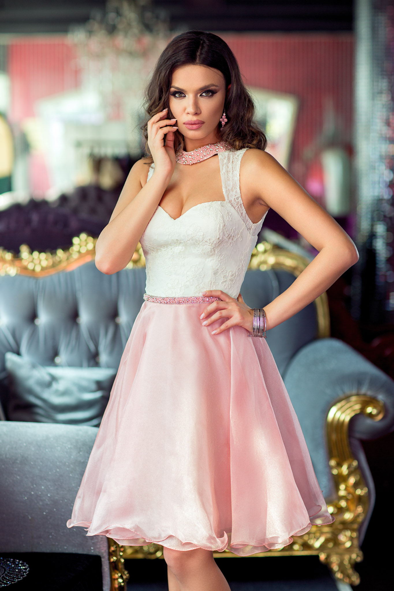 Modelul tip baby doll avantajeaza orice silueta, iar croiul deosebit va face sa emani mult rafinament. Creata dintr-un mix de materiale, se potriveste perfect siluetei tale. Ampla in partea inferioara, avand talia marcata, rochia Ravisant este manifestul suprem al feminitatii! material neelastic se inchide cu fermoar si nasturi la spate bust buretat broderie in partea superioara voal dublat de jupon accesorizata cu strass-uri decupaje in partea superioara Dimensiuni disponibile: S, M
